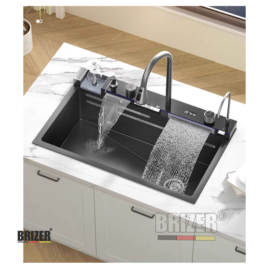 Chậu Rửa Chén 1 Hộc Lớn Inox Phủ Nano 4 Phím Đàn Hiển Thị Nhiệt Độ Brizer BZ7545Đ