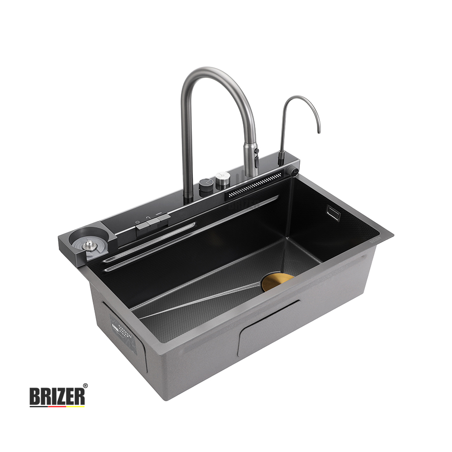 Chậu Rửa Chén 1 Hộc Lớn Inox Phủ Nano Phím Đàn Hiển Thị Nhiệt Độ Brizer BZ7546Đ