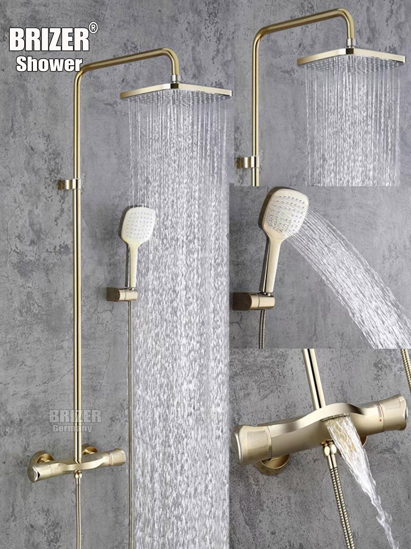 Sen Tắm Đứng Nóng Lạnh Đồng Thau Mạ Vàng Núm Vặn Tăng Chỉnh Nhiệt Độ Brizer BZ 6506V