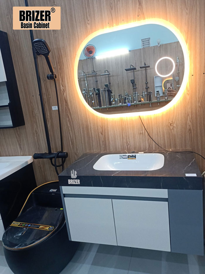 Tủ Lavabo Nhựa PVC Mặt Đá lavabo Âm Tràn Viền Gương Led Brizer BZT823