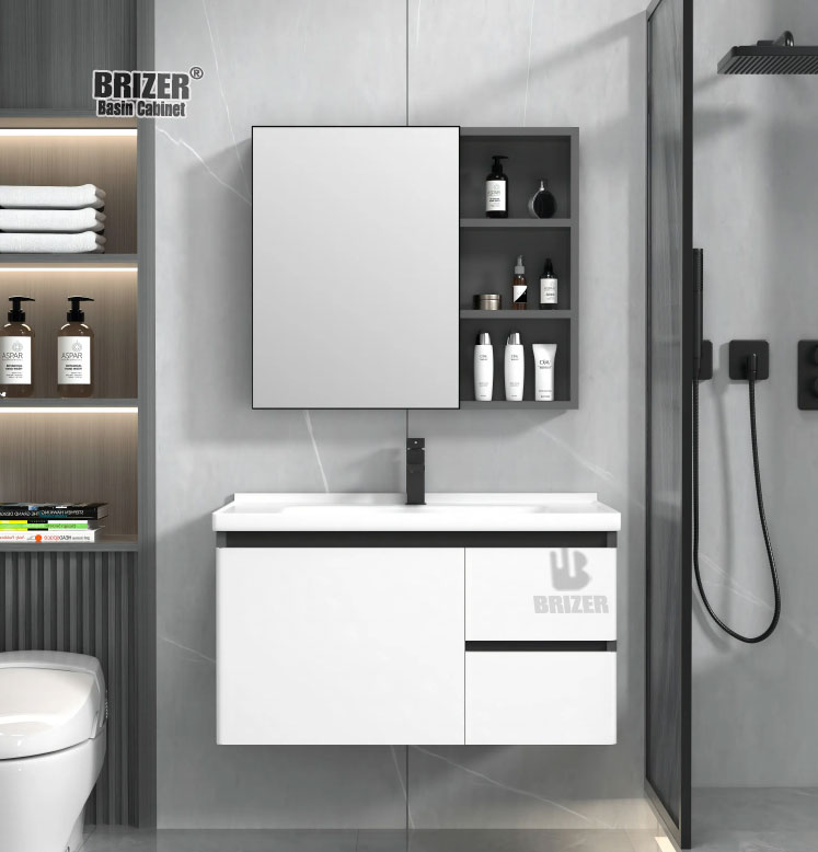Tủ Lavabo Nhựa PVC Màu Trắng Kèm Tủ Gương Brizer BZ816