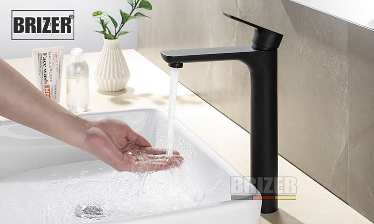 Vòi Lavabo Nóng Lạnh 3 Tấc Mạ PVD Đen Brizer BZ4428
