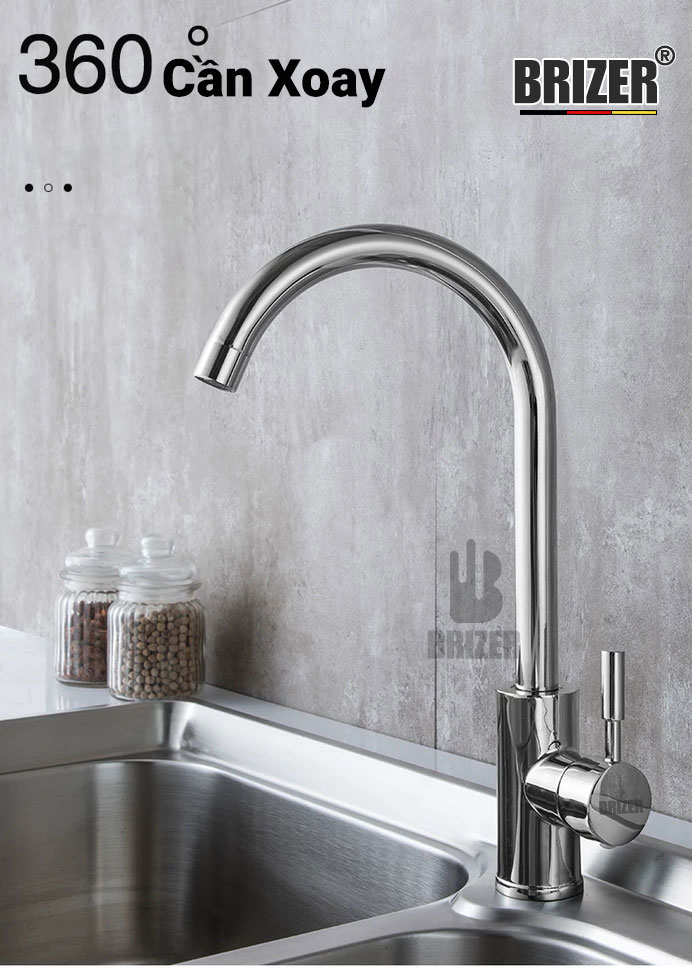 Vòi Rửa Chén Nóng Lạnh Đồng Thau Mạ Crom/Nikel Brizer BZ1011