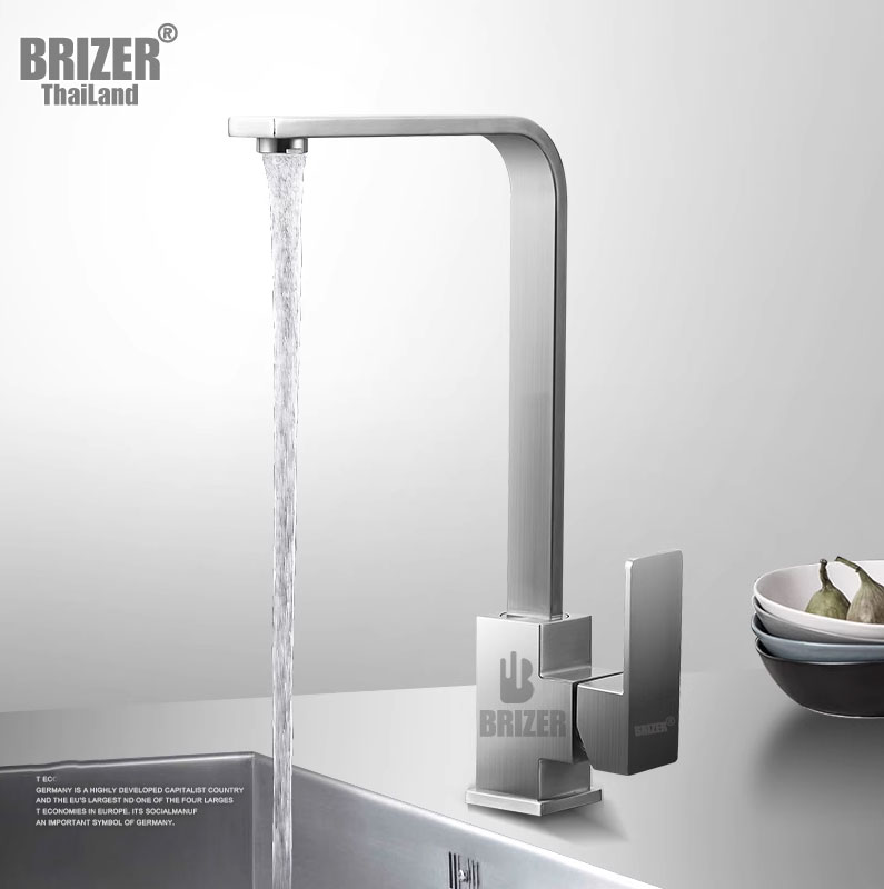 Vòi Rửa Chén Nóng Lạnh Inox 304 Mẫu Vuông Đúc Nhỏ Brizer BZ2006